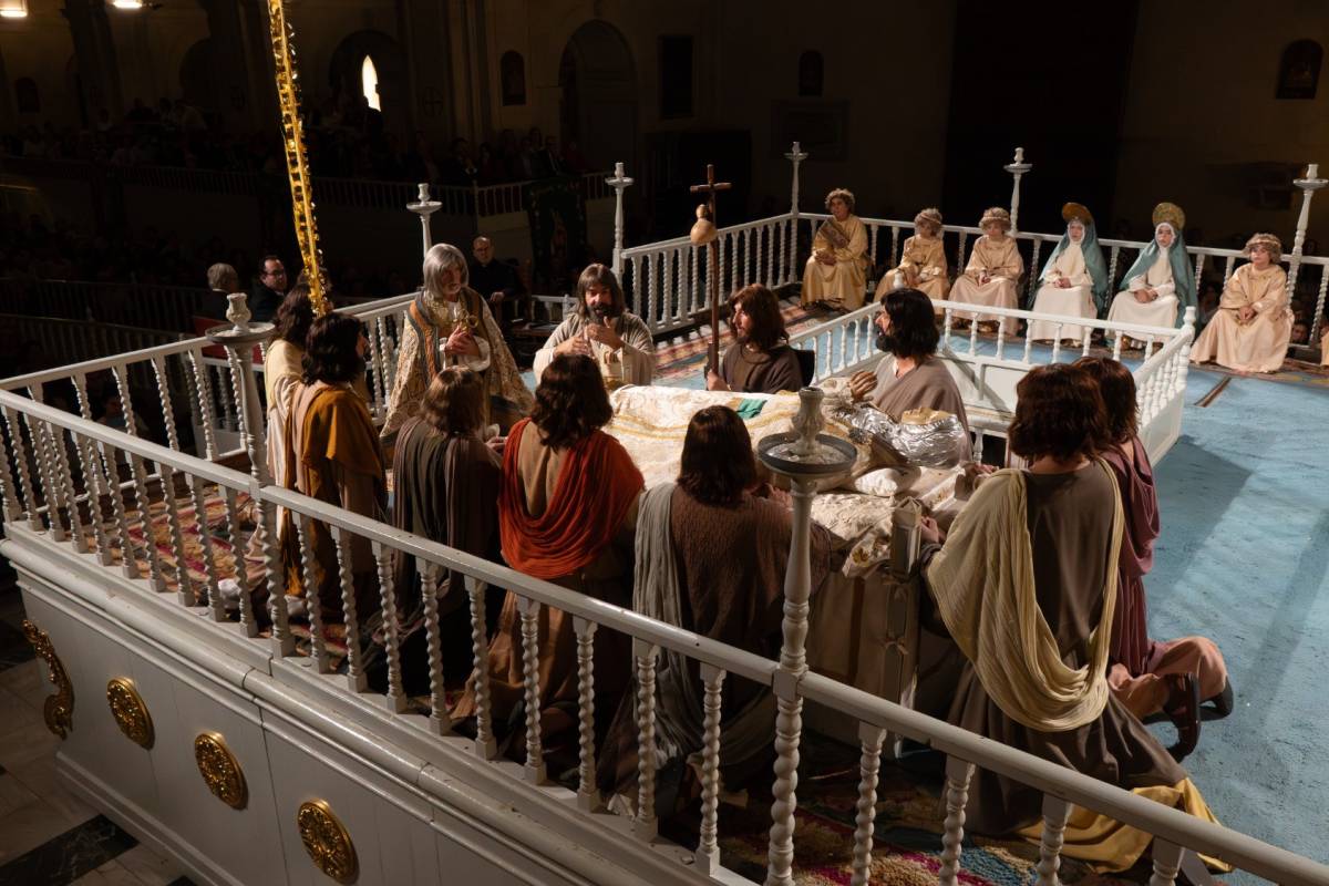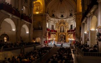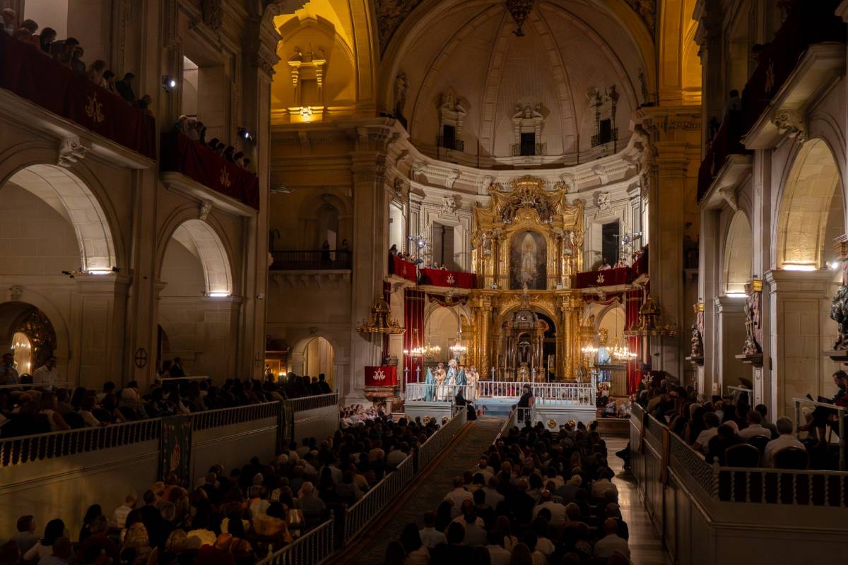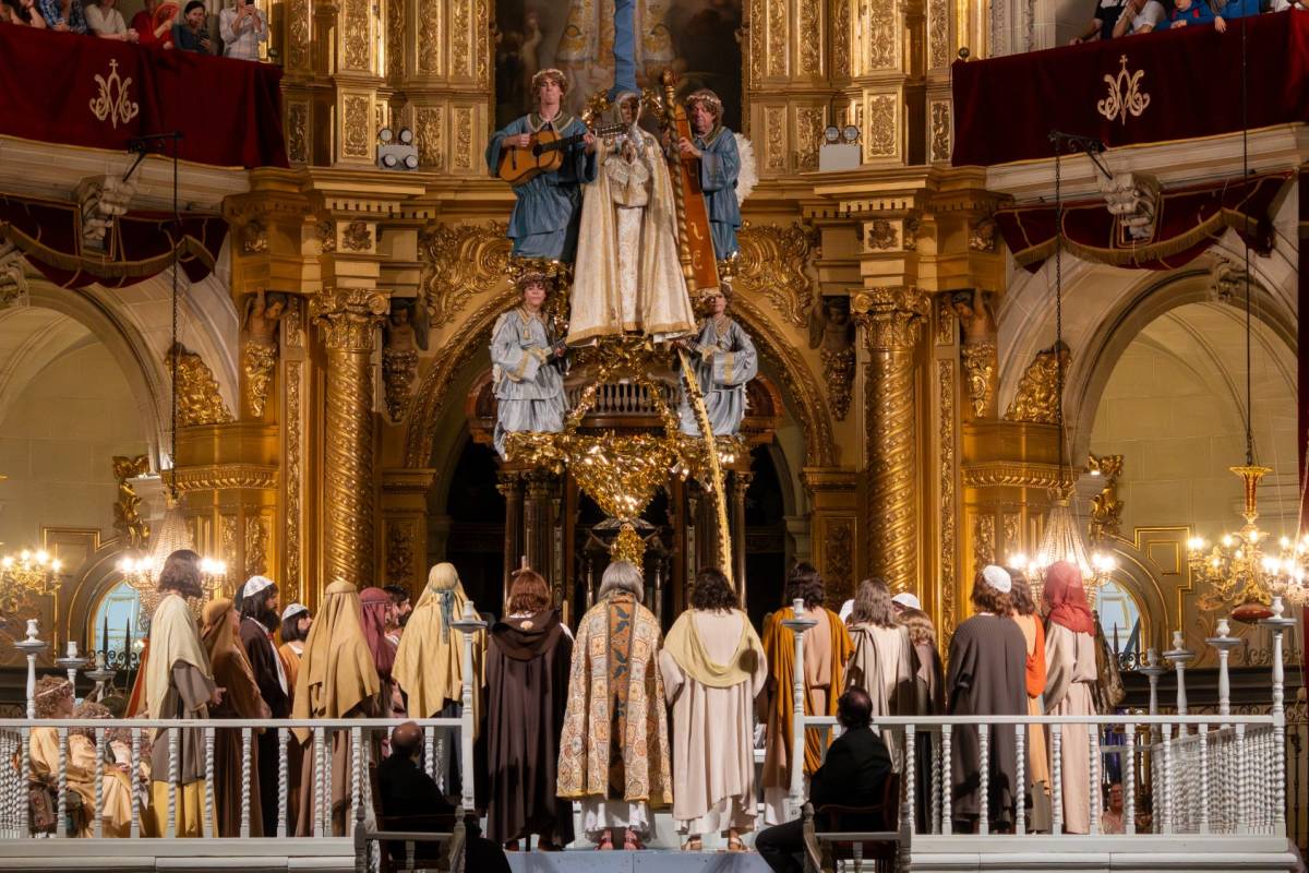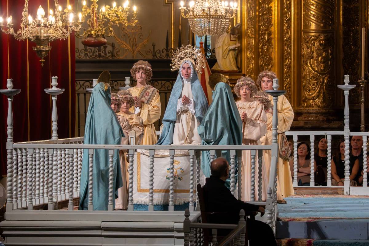 La Basílica de Santa María ha acogido esta noche la penúltima jornada de las representaciones extraordinarias del Misteri, en la recta final del Año Jubilar por el 75º aniversario de la proclamación del Dogma de la Asunción de María. El equivalente otoñal del último ensayo general de agosto, el del día 13, se ha saldado con otro éxito de los intérpretes de la Capella y la Escolanía bajo la dirección musical del Mestre Javier Gonzálvez, como ya sucedió el anterior fin de semana. Una satisfacción evidenciada por la intensa ovación del público asistente y los elogiosos comentarios a su término.