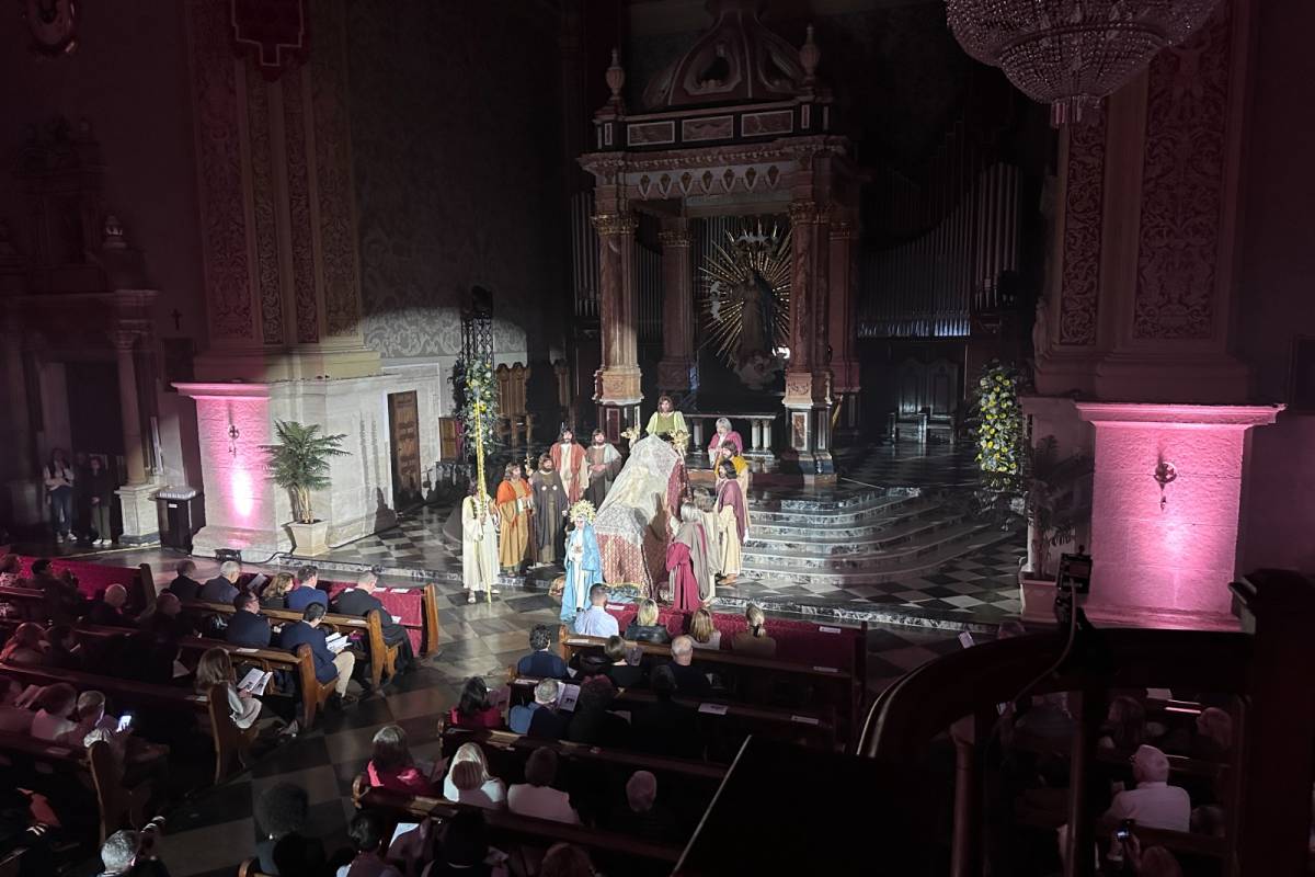 La basílica arciprestal de la Asunción de Nuestra Señora de Llíria ha acogido en la tarde de hoy un concierto escenificado de la Festa d’Elx, en un templo completamente lleno.