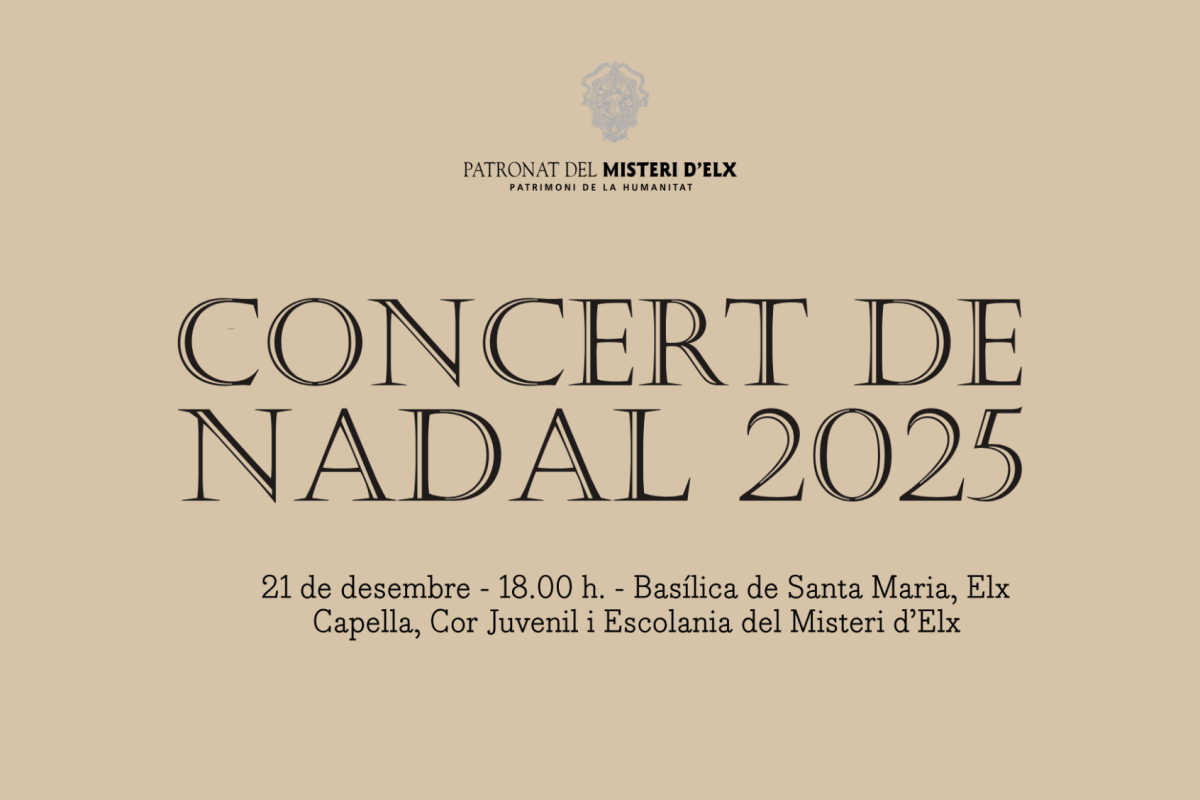 El Patronato del Misteri d’Elx ha organizado para el próximo domingo 21 de diciembre, a las 18:00 horas, en la Basílica de Santa María de Elche, su tradicional concierto de Navidad, bajo el título Tempus Nativitatis, Nativitas in Tempore. Tiempo de Navidad, Navidad en el tiempo.