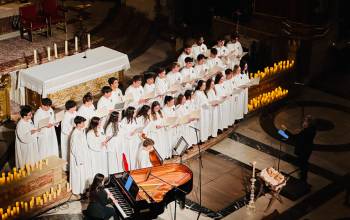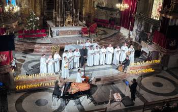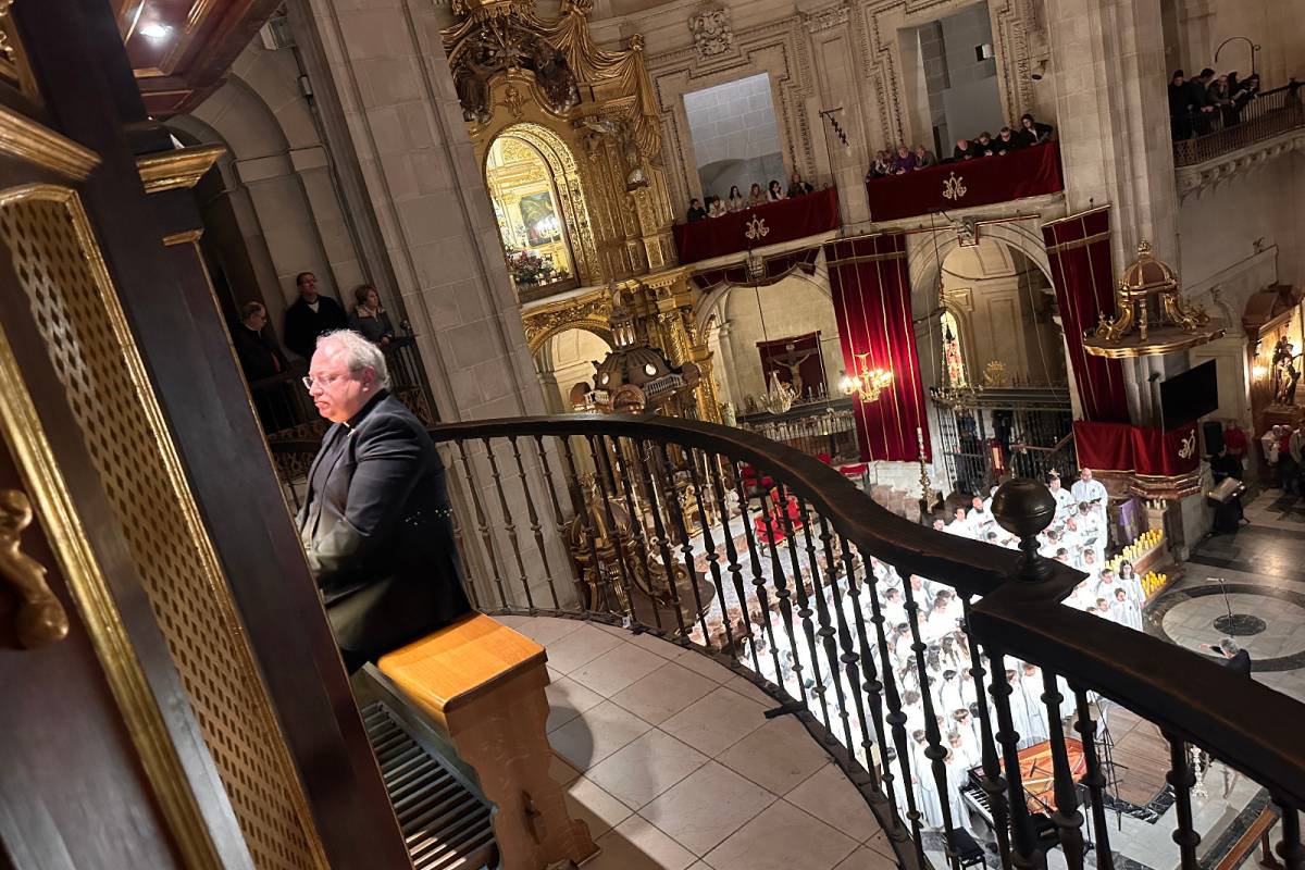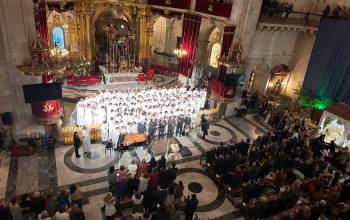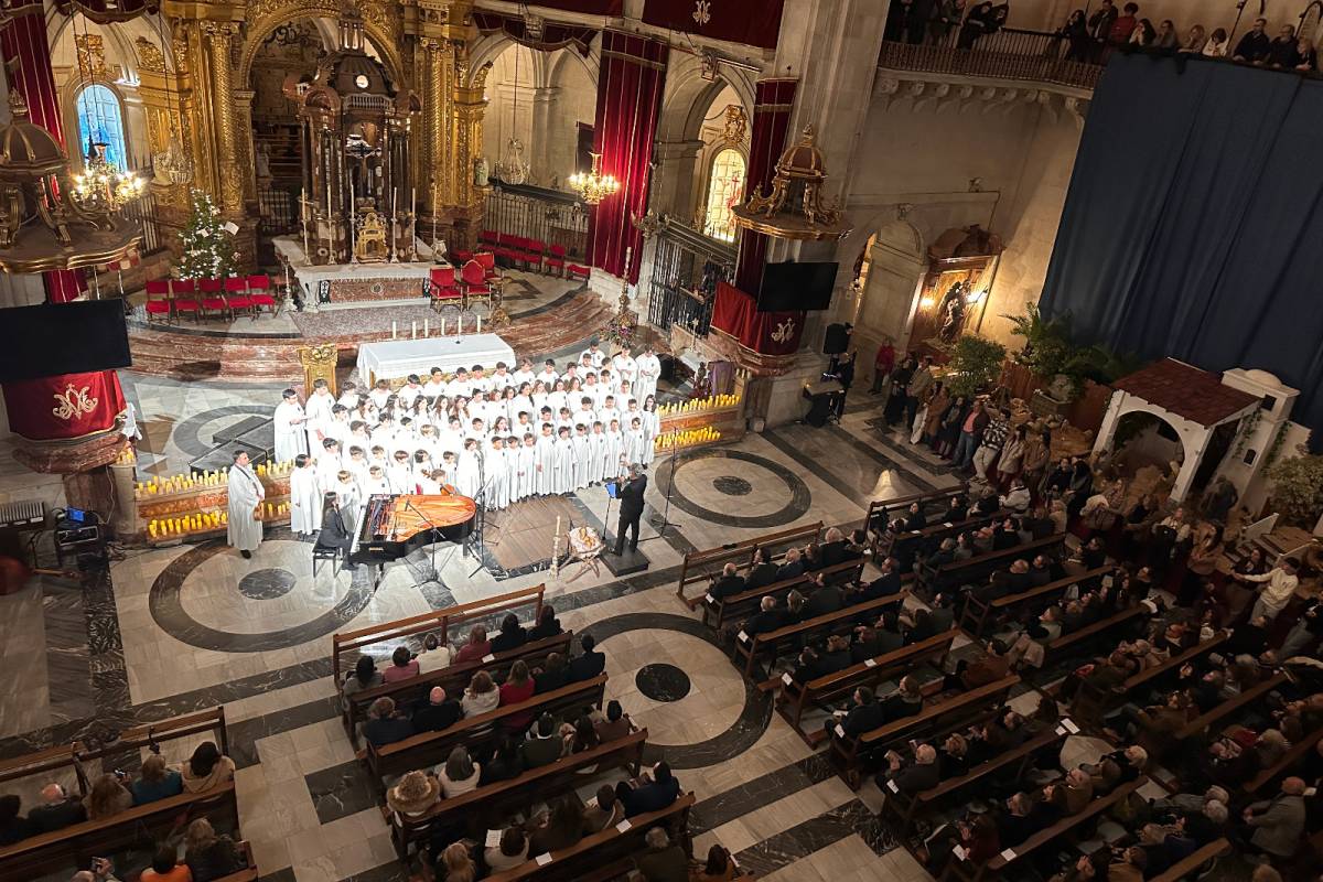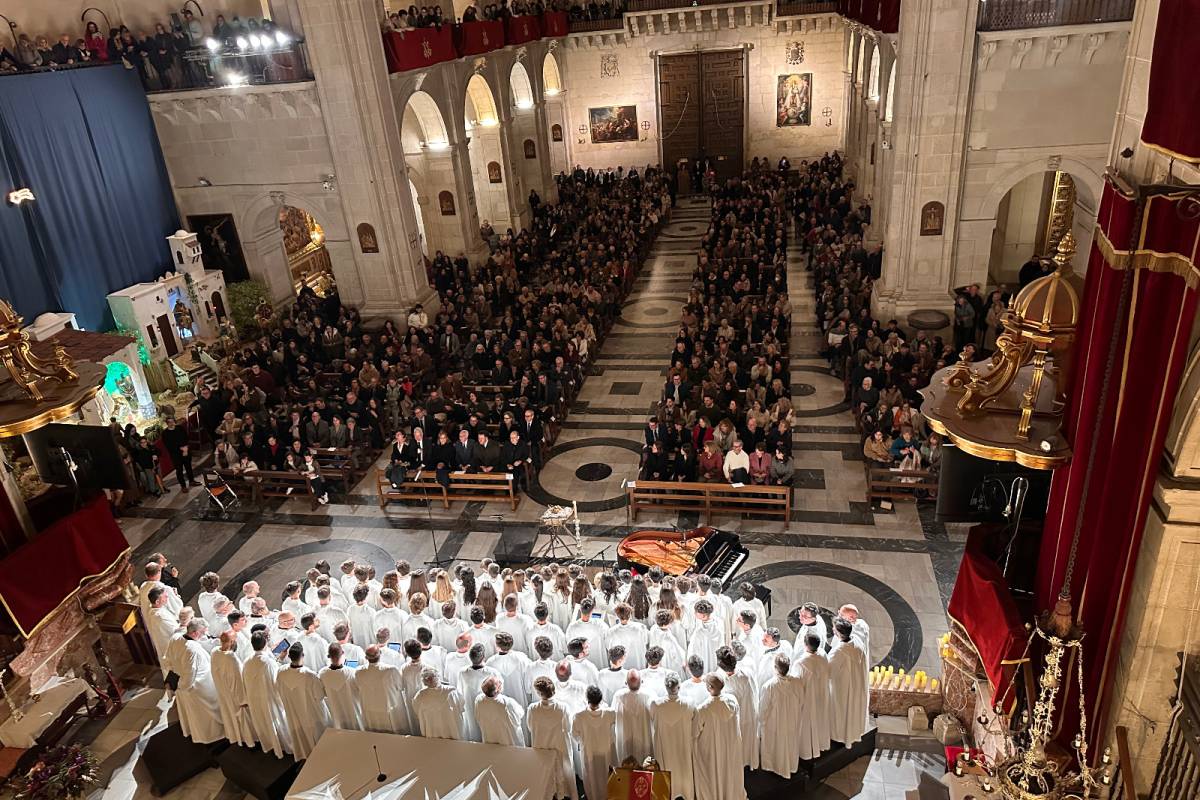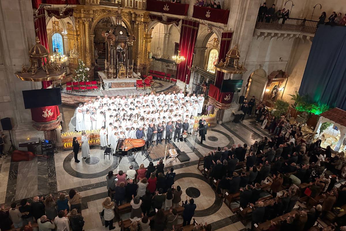 La Basílica de Santa María ha acogido esta tarde el tradicional Concierto de Navidad a cargo de la Capella, el Coro Juvenil y la Escolanía del Misteri, que este año se presentaba bajo el lema Tempus Navitatis, Navitatis in tempore (Tiempo de Navidad, Navidad en el tiempo). Ante el público que llenaba el templo, las tres masas corales de la Festa, por separado y juntas, han desgranado con notable éxito un variado repertorio que incluía desde la monodia gregoriana a las canciones navideñas contemporáneas y villancicos ilicitanos, pasando por el contrapunto y la armonía renacentista.