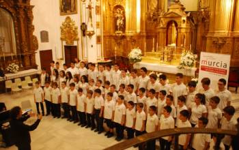 La parroquia de San Andrés ha sido el escenario en el que la Escolanía del Misteri ha ofrecido, a las 20:00 horas, su concierto en solitario, en el II Congreso Nacional de Pueri Cantores que se celebra en Murcia. El grupo de voces blancas del Misteri ha brillado a gran altura en la interpretación de todo el programa, pero especialmente en las dos piezas clave de La Festa que han cerrado el acto: Salve Regina y el Gloria Patri. El programa que han presentado los escolanos de la Festa ha emocionado a los numerosos asistentes, que les han despedido con una ovación calurosa y prolongada. El programa completo ha incluido: Una vela (Andy Beck); Cantate Domino; Nancy Hill Cobb; Halellujah (Leonard Cohen); Colores en el viento (Alan Meneen).
